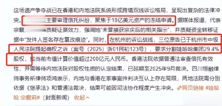 更绝的是遗产分配:给私生子设21亿信托基金,又在遗嘱里写“境外资产归宗馥莉”,这操作好比给猫和老鼠分奶酪,不打架才怪。